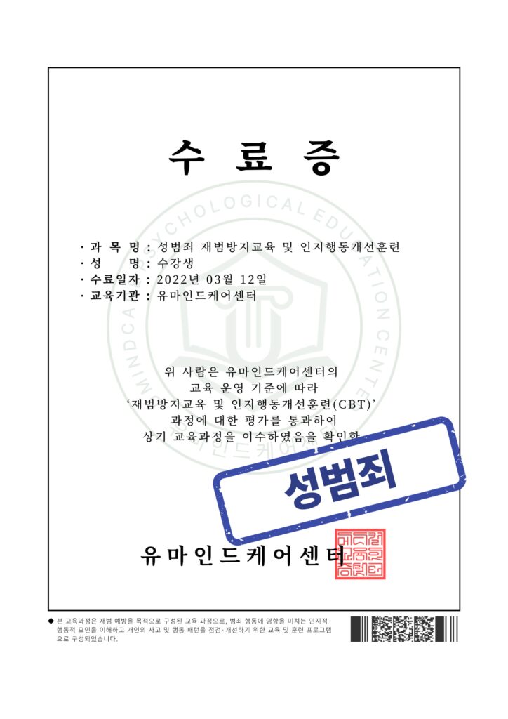 성범죄 재범방지교육 및 인지행동개선훈련