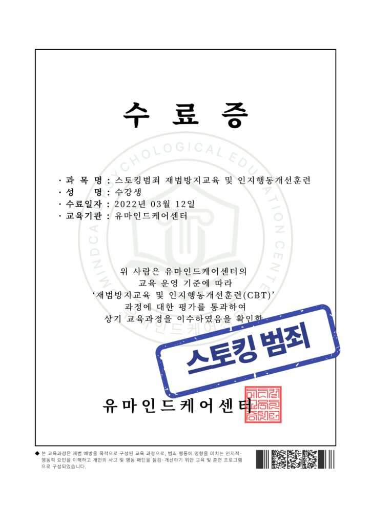 스토킹범죄 재범방지교육 및 인지행동개선훈련